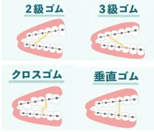 下顎の犬歯付近から上顎の奥歯にかけて付ける3級ゴムというものを処置され数週間経ちましたが