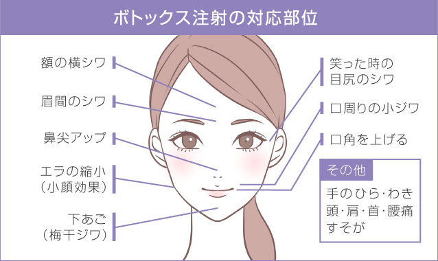 エラ部分の咬筋(こうきん)という筋肉にボトックスを注入することで、筋肉の働きをやわらげ、フェイスラインをすっきり見せる施術です。