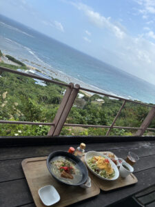 風はかなり強風でした😅手前のソーキそばを頼みました。