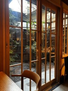 錦小路通りに面したカフェ