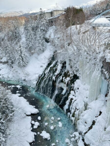 ちなみに夏は↑のような、名前通りの青い池がみれるようです!